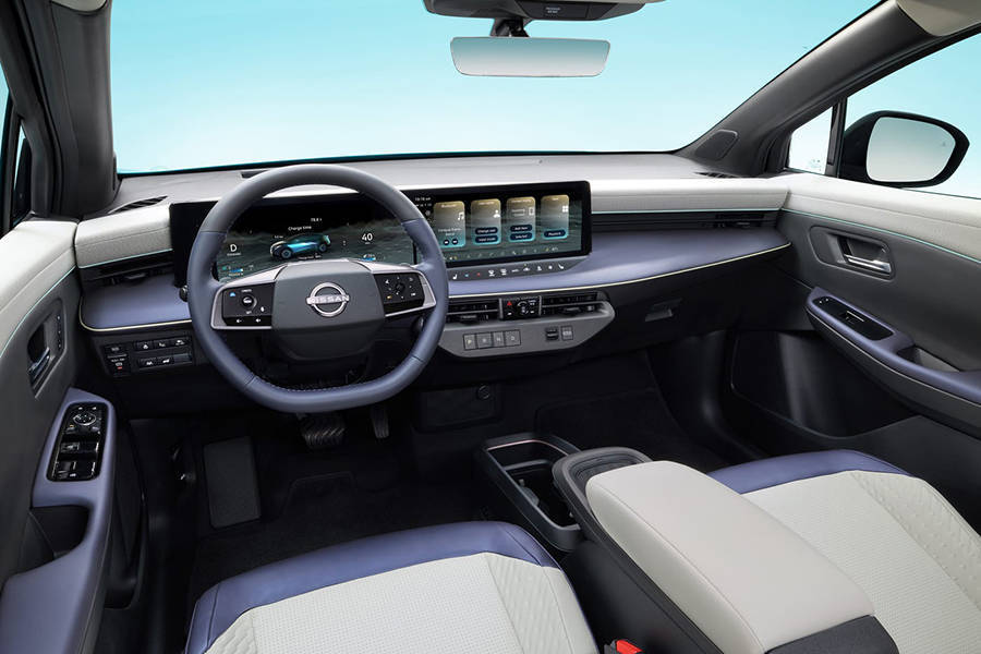 侧面溜背式造型搭配分段式腰线,流畅又动感。隐藏式门把手和 18 - 19 英寸低风阻轮毂,不仅好看,还能优化空气动力学性能,欧版车型风阻系数低至 0.25 哦!车尾集成式扰流板与熏黑尾灯设计,致敬日产 Z 系列跑车,运动气息十足,开在路上,你就是最酷的仔。????内饰:极简风与科技融合走进车内,满满的极简主义风格。双 12.3 英寸或 14.3 英寸连体大屏(根据配置不同),集成了信息娱乐与控制功能,操作流畅,显示清晰,各种车辆信息和功能一目了然。两辐式方向盘集成触控按键,操作便捷。取代传统换挡杆的按键式设计布局在空调出风口下方,节省了不少空间。高配车型还配备带 e - Dimming 功能的全景天窗,电致变色技术和红外反射涂层,让你在享受阳光的同时,又不用担心被晒到,简直不要太贴心。